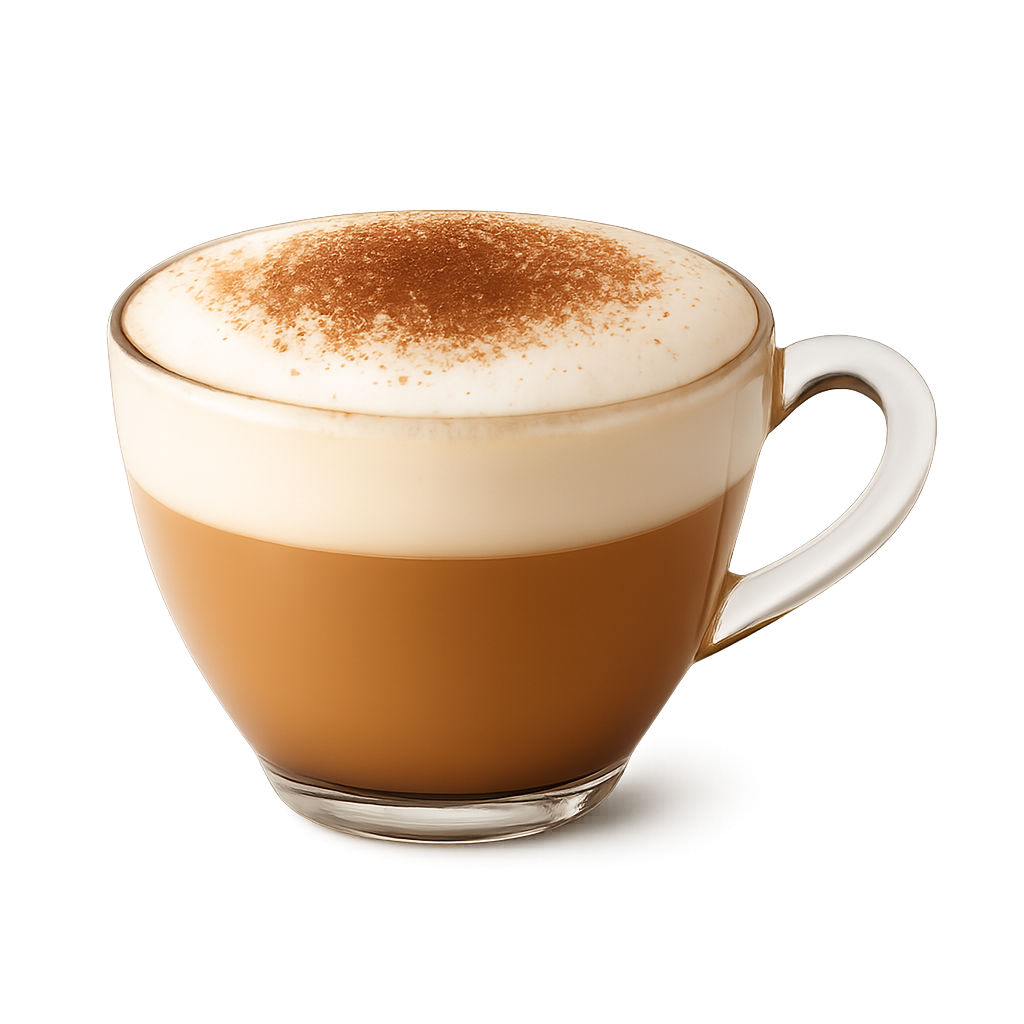 Eşit oranda espresso, süt ve köpük. Dengeli, kadifemsi ve klasik bir lezzet.